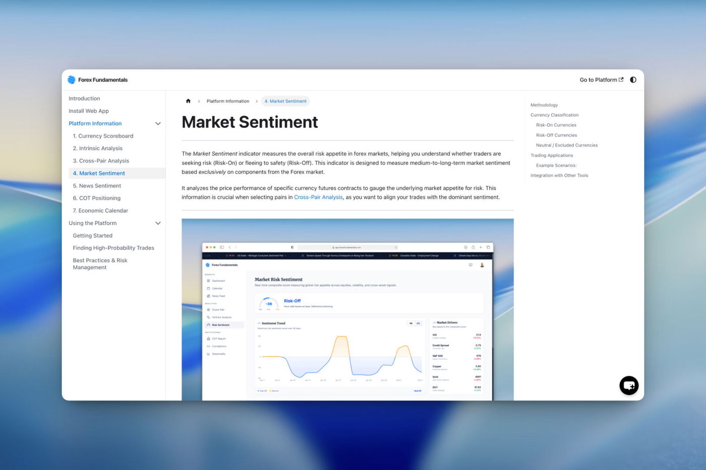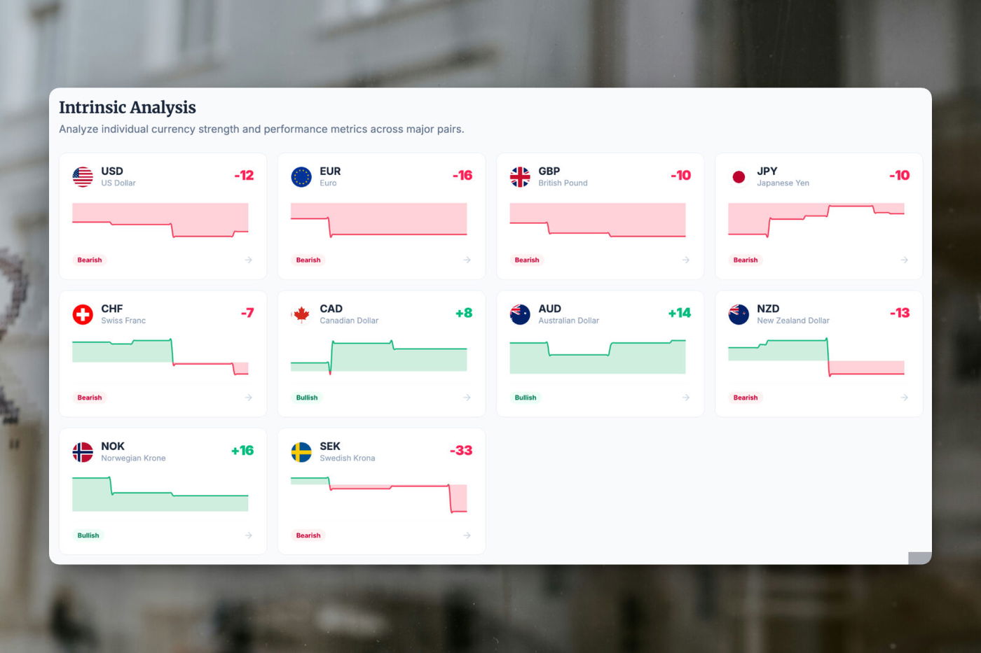 On top of that, we've enhanced our core analysis tools. Cross-Pair Analysis and Intrinsic Analysis now include score history charts, so you can track how scores develop over time and spot emerging trends. The News Sentiment has been redesigned with smarter sentiment calculations and an interactive sentiment bar for deeper insights.