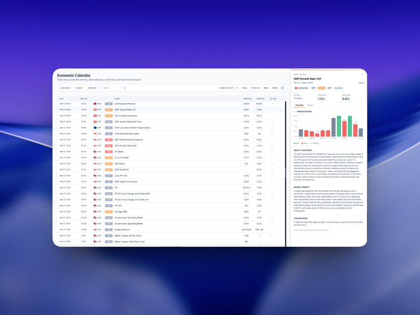 We are excited to announce the launch of our brand-new native Economic Calendar on Forex Fundamentals. As always, it delivers the clean and clear overview you expect from us. This new calendar is designed to enhance your trading experience and opens many opportunities for ongoing development.