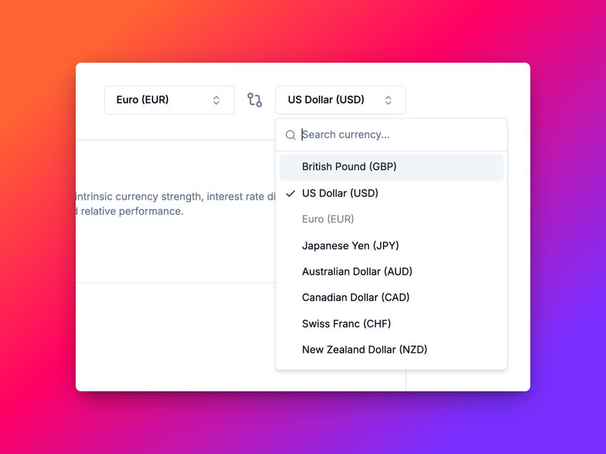 This enhancement applies to multiple sections, including Cross-Pair Analysis, Scoreboard Filters, and News Sentiment Filters, ensuring a smoother and more efficient workflow when analyzing or comparing currencies.